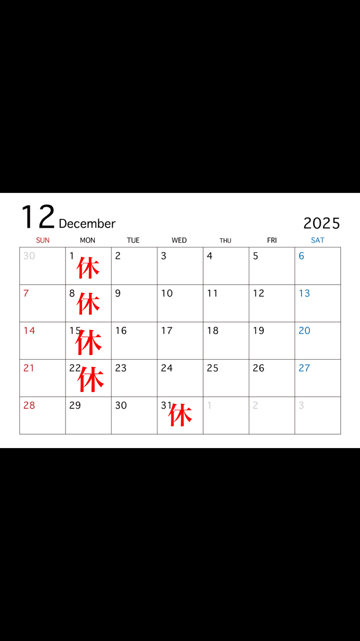 当店では下記の通り、12月の営業スケジュールを予定しております。