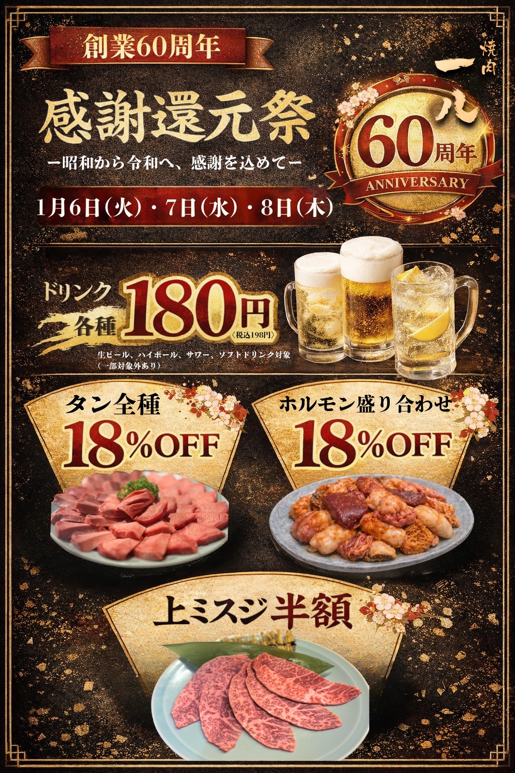 おかげさまで、焼肉一八は本年創業60周年を迎えることができました。